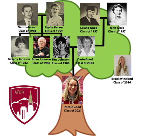 The Good-Johnson clan has now sent enough students to DU to field a Pioneer soccer team. Last fall, Nicole became the 11th family member to don Crimson and Gold and would be the 10th to graduate, following in the footsteps of all four of her grandparents, both her parents, an aunt, two uncles and a first cousin. That’s not to mention her beloved distant relative, Marilyn Girouard, who created an endowment to fight alcohol and substance abuse.