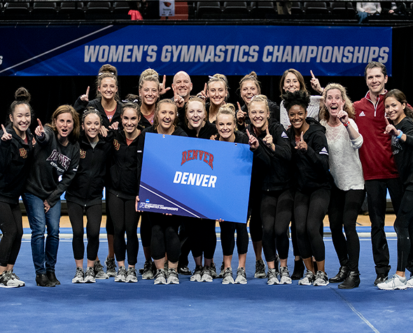 It was the final routine in the final event of the night. University of Denver senior Kaitlyn Schou stepped up to the beam to perform at the NCAA women’s gymnastics regionals in Corvallis, Oregon. At stake that evening two weeks ago was an opportunity for DU to advance to the NCAA National Championships for only the fifth time in program history.