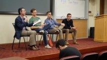 Three voices of a popular podcast — Jon Favreau, Dan Pfeiffer and Tommy Vietor, all former staffers in the Obama White House — sat at the front of Sturm Hall’s Lindsay Auditorium to engage in a no-nonsense conversation of the day’s political issues. They were on campus for a discussion co-hosted by the University of Denver’s political science department and DU’s new Center on American Politics.