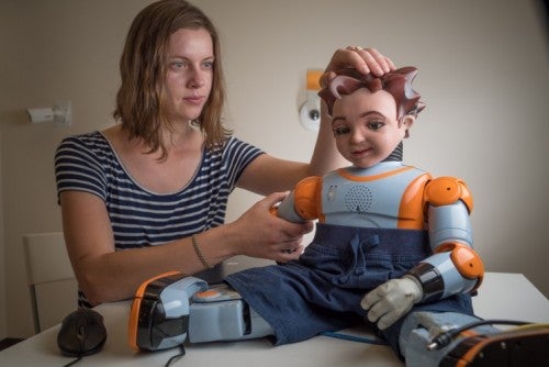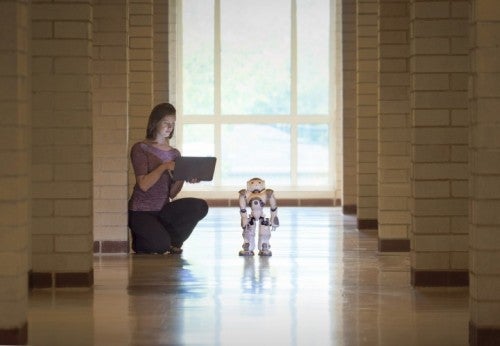 “I’ve been interested in the intersection of robotics and human interactions — also known as socially assisted robotics — for a long time,” says Owen, now a junior. While in Mahoor’s lab, she worked on Zeno’s programming and also started to build a chatbot — a computer program designed to simulate conversation with human users.