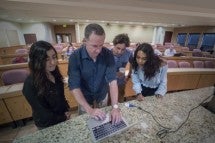 Jon (left) and Adam Schlegel work with students in the capstone course for the food and beverage concentration. (Photo: Wayne Armstrong)