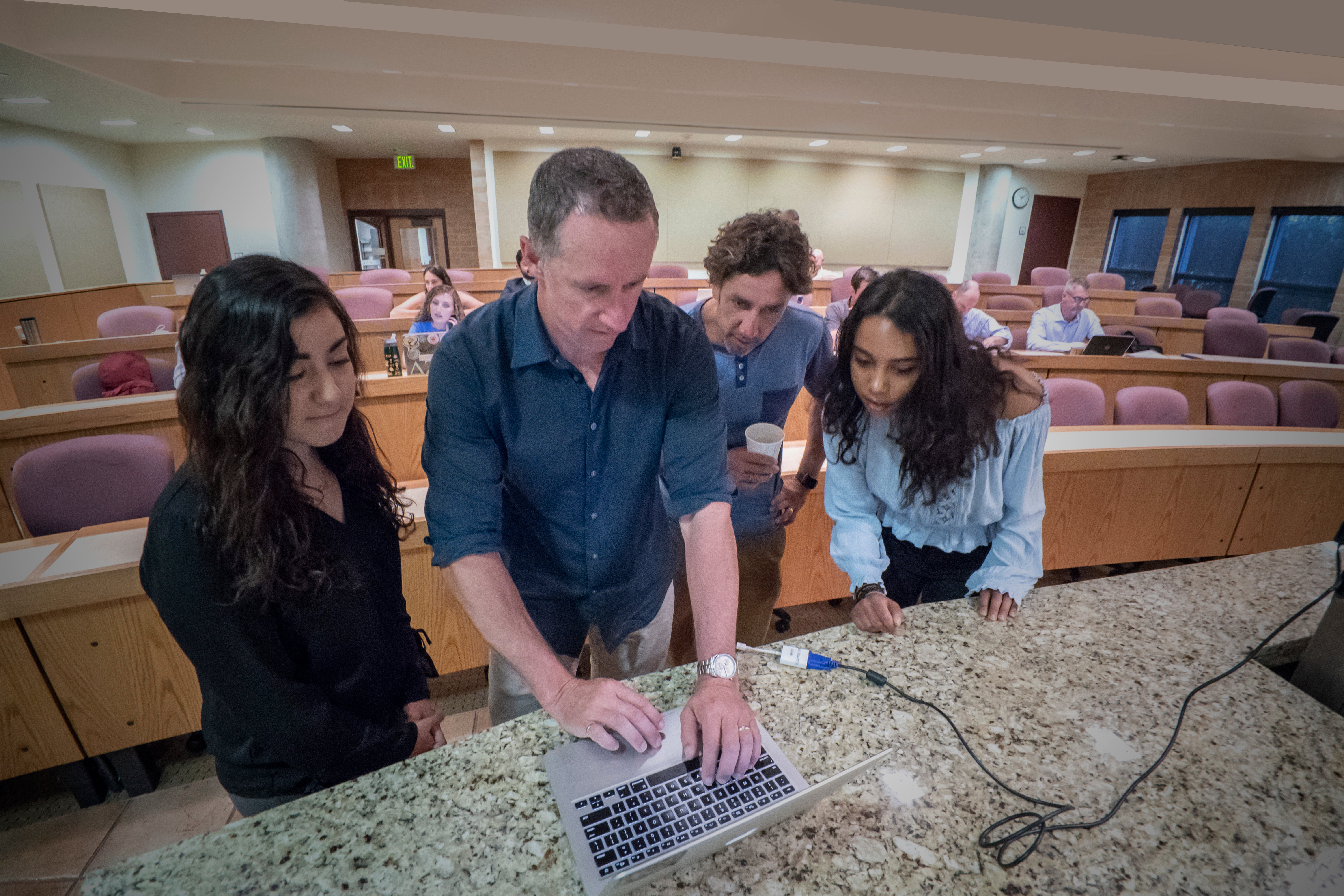 The other night, Jon Schlegel had two students over for dinner at his home. He had to kick them out when it got too late so he could get some rest before class the next day. Back in November, Jon took two students to Piedmont, Italy, on a wine-tasting tour through his former stomping grounds. As students file into class, he asks another where her family ended up going for her birthday dinner. Recognizing the place, Jon asks what she ordered and comments approvingly on her excellent choice. Yet another student walks in, and Jon meets her at the door for a quick conversation about a possible industry connection.