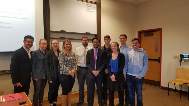 Below: Students in this semester's Immigration Law and Policy Clinic meet with members of the Mexican Consulate