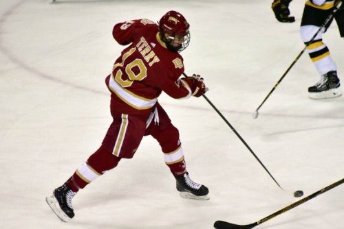 For Troy Terry, 2017 was a remarkable year. Last January, the junior DU hockey player helped lead the Americans to a gold medal in the World Junior Championships. Three months later he was on the ice in Chicago, as the Pioneers celebrated a national championship. And just as 2017 came to a close, Terry learned he would be skating with Team U.S.A. in the 2018 Olympics next month.