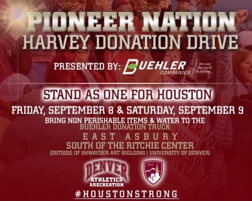 The University of Denver is already working to provide assistance to current students who are from the impacted area. This new partnership between Denver Athletics and Buehler Companies is making it possible for the DU community to help other victims of Hurricane Harvey as well.
