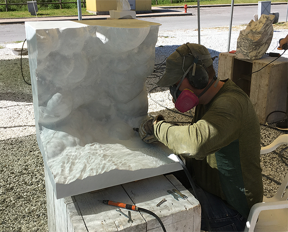 A: I created the 3-D model using open source software over a period of a couple weeks in March and then arrived in Italy June 1 to see the machined block of marble for the first time. My digital file being physical and so large was intense. I remained until June 30, when the 23 people in the residency had an exhibition of the finished pieces.
