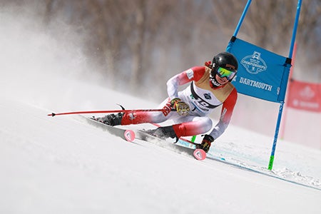 Mia Hunt skis down the mountain at the 2025 NCAA Skiing Championships (NCAA Photos).