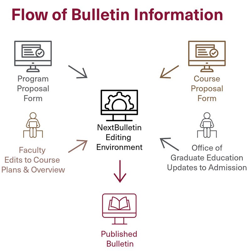 Bulletins serve as the official record outlining the academic requirements for earning a credential, specific to students admitted during a given academic year. It is crucial for academic programs to ensure that these Bulletins present a precise and reliable representation of the courses and requirements students will follow throughout their academic journey at the University.
