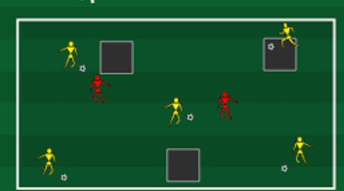 Again, the idea here is promoting players to make runs and movements in behind or find combinations that allow them to progress forwards with speed. The need to score in 5 seconds after making fast movements to break forwards will emphasize the muscular contraction of speed in our players.