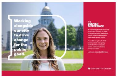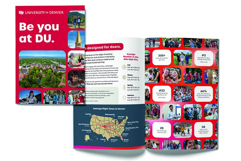 This expression also highlights what we do and how we do it. We elevate industry-leading faculty, human-centered research, and the 4D experience. We show how learning and discovery happen in classrooms, labs, neighborhoods, and the mountains. We speak with an adventurous, driven, and purposeful voice. When our choices align with DU’s core brand, and our actions reflect the spirit of The Denver Difference, audiences can feel it, remember it, and choose DU.